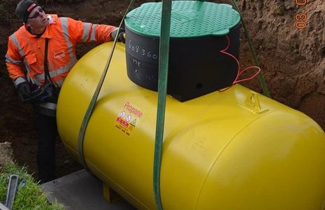 We now have heating in the cafe / meeting room. A hole was dug, and the tank installed.