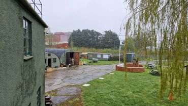 Painting the roofs of the Nissan huts.